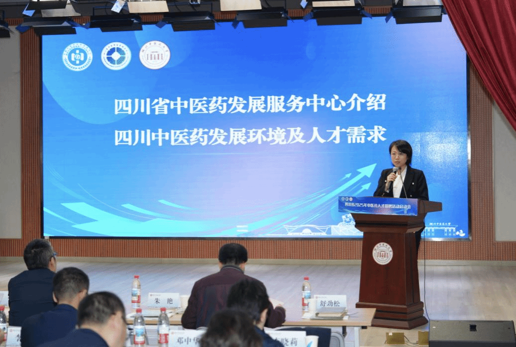 四川省中医药发展服务中心副主任朱艳详细介绍了四川省中医药在体系建设、产业发展与文化传承方面的进展和成果,帮助同学们了解赴川就业的广阔前景。