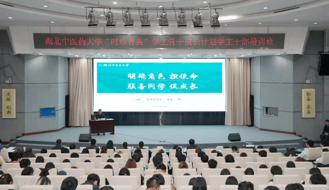 开班仪式上,校学生会主席李俊辉、校学生助理委员会主席安若瑶作为学生代表发言,分享服务同学的实践体会,号召全体学员以积极心态投入学习。校团委负责人宣读《湖北中医药大学2025-2026学年度“时珍菁英”学生骨干成长计划实施方案》,学生工作部(处)相关负责人强调了本次培训班的纪律及注意事项。
