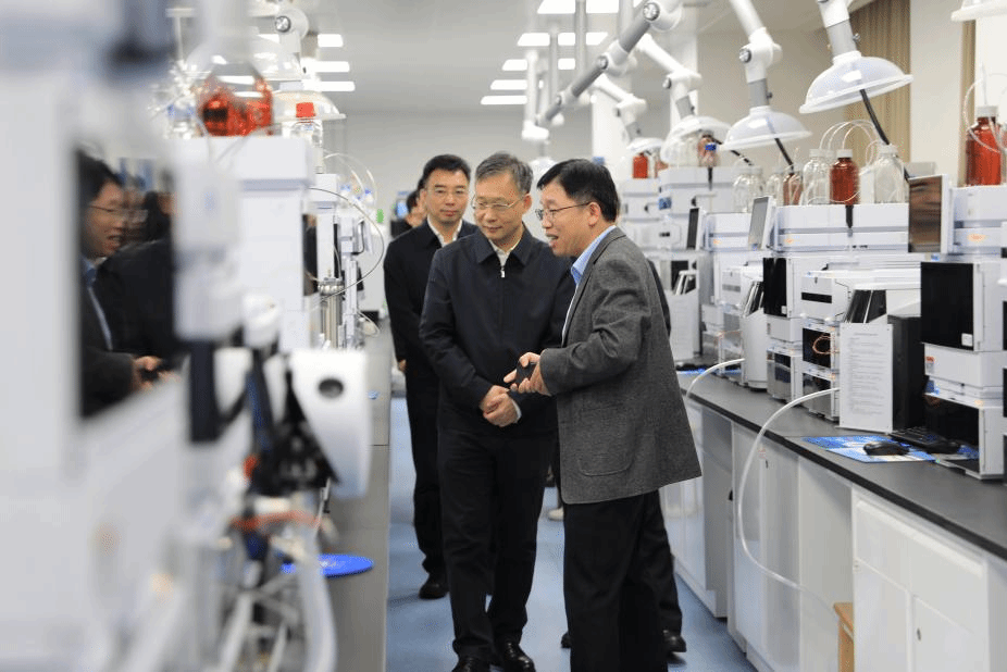 随后,刘爱国一行实地考察湖北时珍实验室,参观了分析测试中心平台。