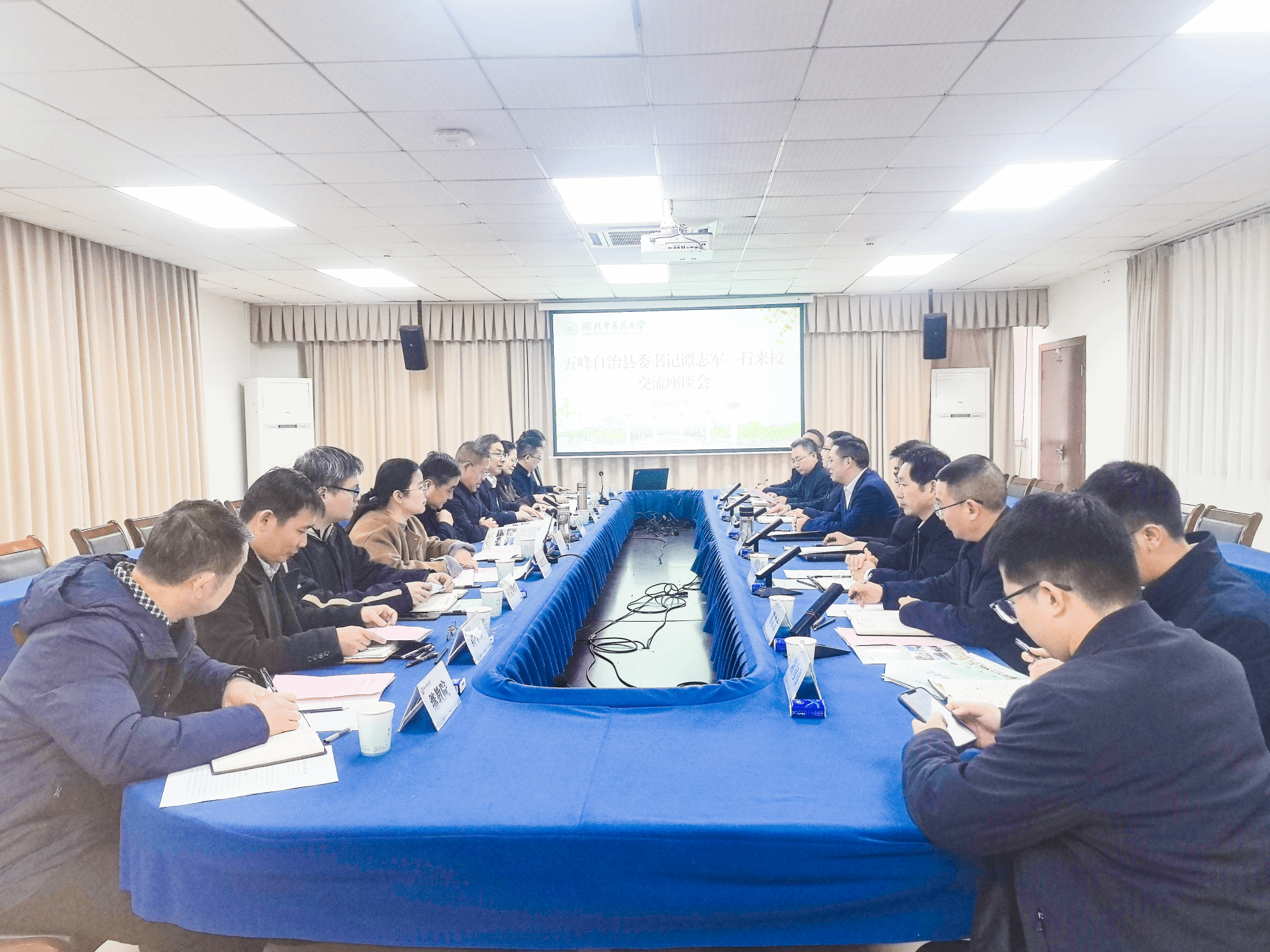 谭志军对学校给予五峰县中医药事业的大力支持表示衷心感谢。他表示,五峰凭借独特生态优势建成武陵山区的“天然药库”,当前正全力推进中医药产业高质量发展,希望学校在科技研发、人才培养、成果转化等方面加大帮扶力度,助力产业可持续发展。