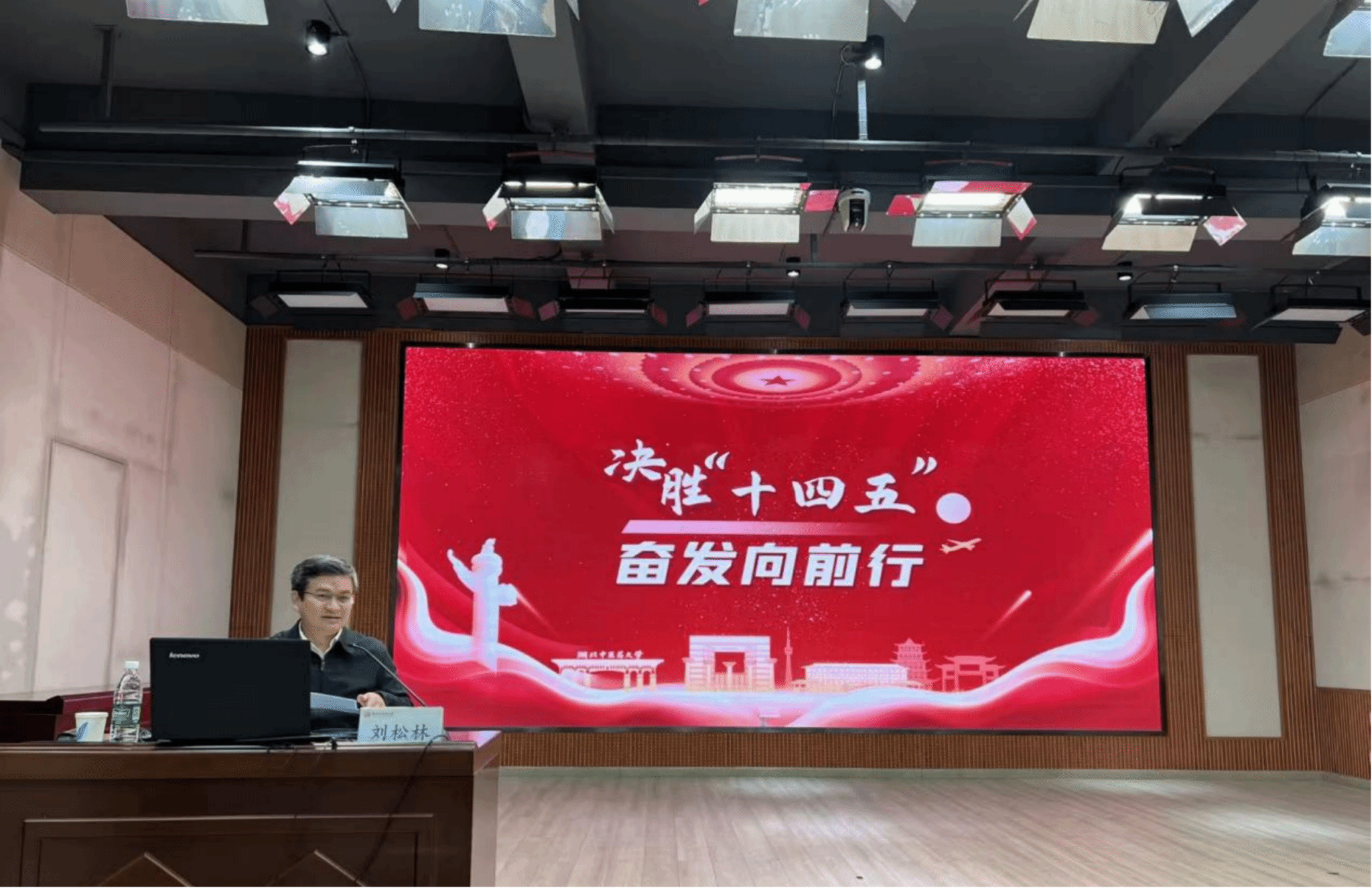 党委书记刘松林以“决胜十四五,奋发向前行”为题,为中医学院2022级、2024级时珍国医班学生授课。他围绕“十四五”时期我国经济社会发展取得的重大成就、经验启示以及科学谋划“十五五”新篇章三个方面进行讲解,重点阐述了学校立足中医药特色服务地方经济社会发展作出的贡献,教育学生以全球视野和战略思维看待机遇与挑战,寄语青年学子把个人的理想追求融入党和国家事业之中,坚定中医药文化自信,为卫生健康事业贡献力量。