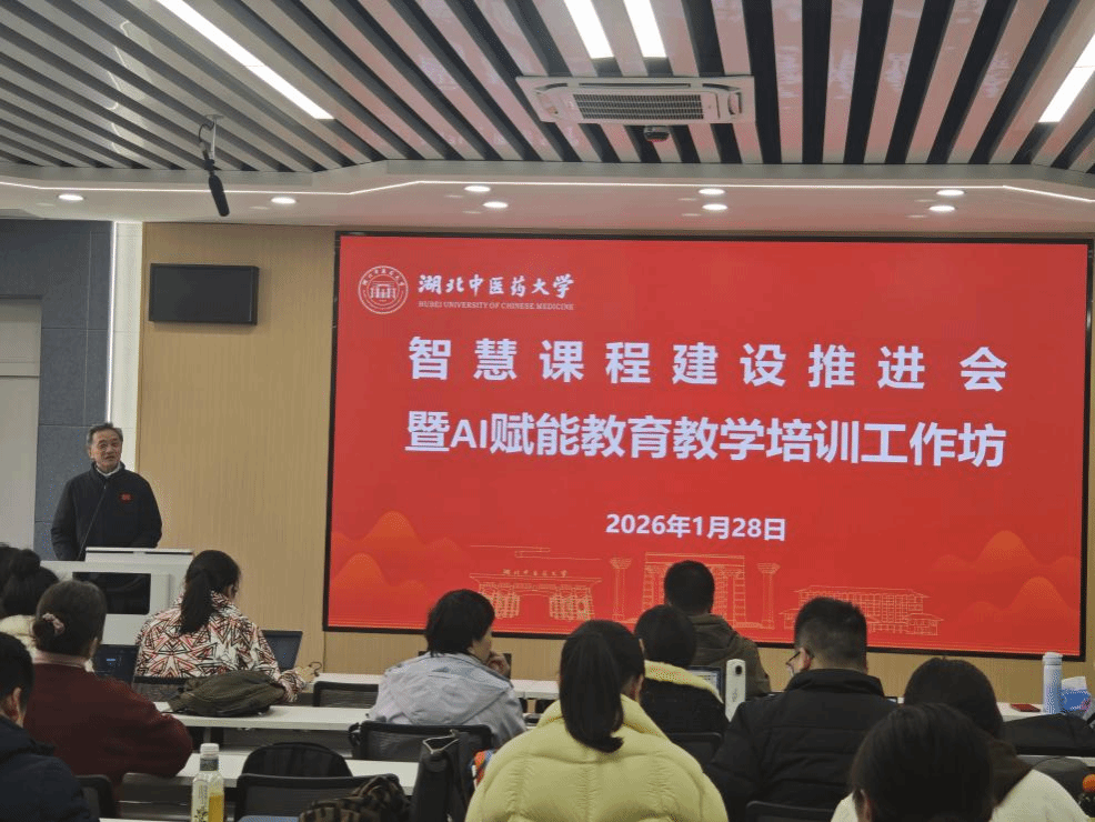 本网讯 1月28日,学校在黄家湖校区举办智慧课程建设推进会暨AI赋能教育教学培训工作坊。副校长王彦春出席并致辞,全校80余名骨干教师参加活动。教务处负责人主持活动。