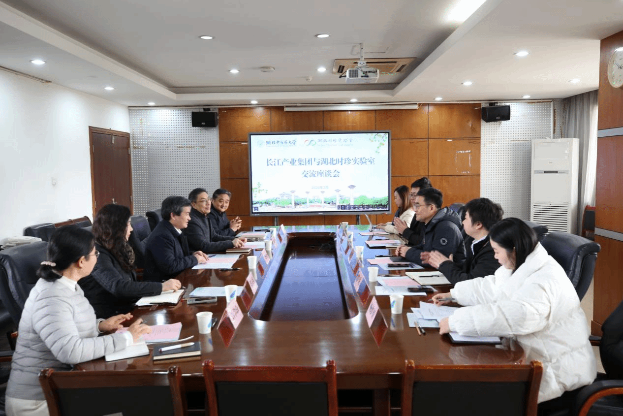 本网讯 3月4日,长江产业投资集团有限公司总经济师童卫宁一行到湖北时珍实验室,就推进长江产业投资集团深度参与实验室建设运营管理进行交流座谈。学校党委书记、湖北时珍实验室常务副主任刘松林,副校长刘建忠出席会议。长江产业投资集团长江医疗产业投资有限公司总经理雷佳、生物医药事业部部长罗昕、生物医药事业部研究员杨梦倩,长江创投楚天凤鸣基金事业部总经理胡晨,学校党政办公室、科学技术发展研究院负责人以及湖北时珍实验室相关工作人员参加会议。会议由刘建忠主持。