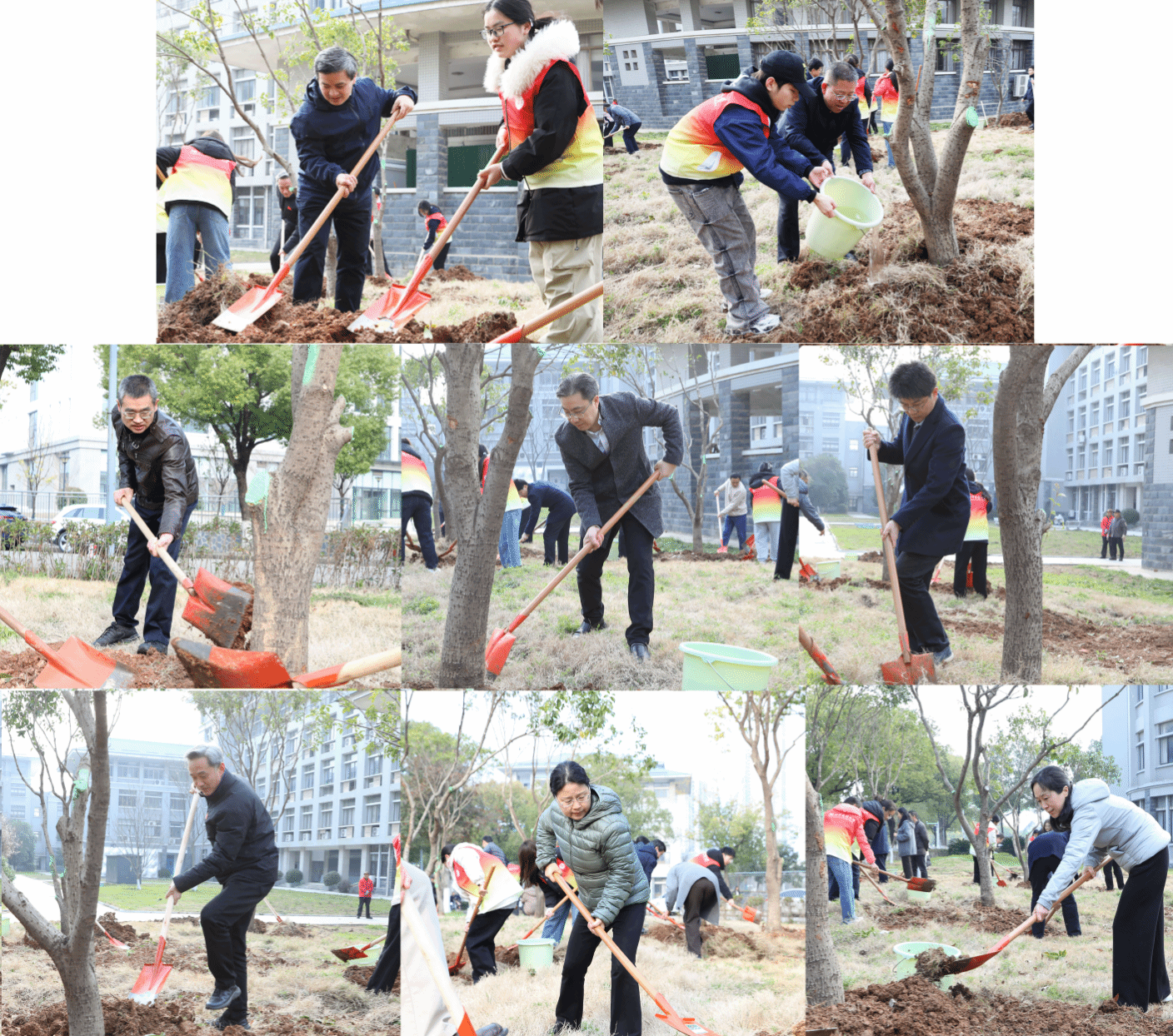 本网讯 春和景明,万象更新。3月9日,学校“杏林护绿·共植初心”植树节主题活动在黄家湖校区举行。校领导刘松林、陈刚、杨波、刘建忠、曹继刚、王彦春、蔡晓英、宋杰,党政办公室、学生工作部(处)、后勤管理处负责人,学生代表等一同种下新苗,以实际行动履行生态环境保护责任,为校园增添绿色生机。