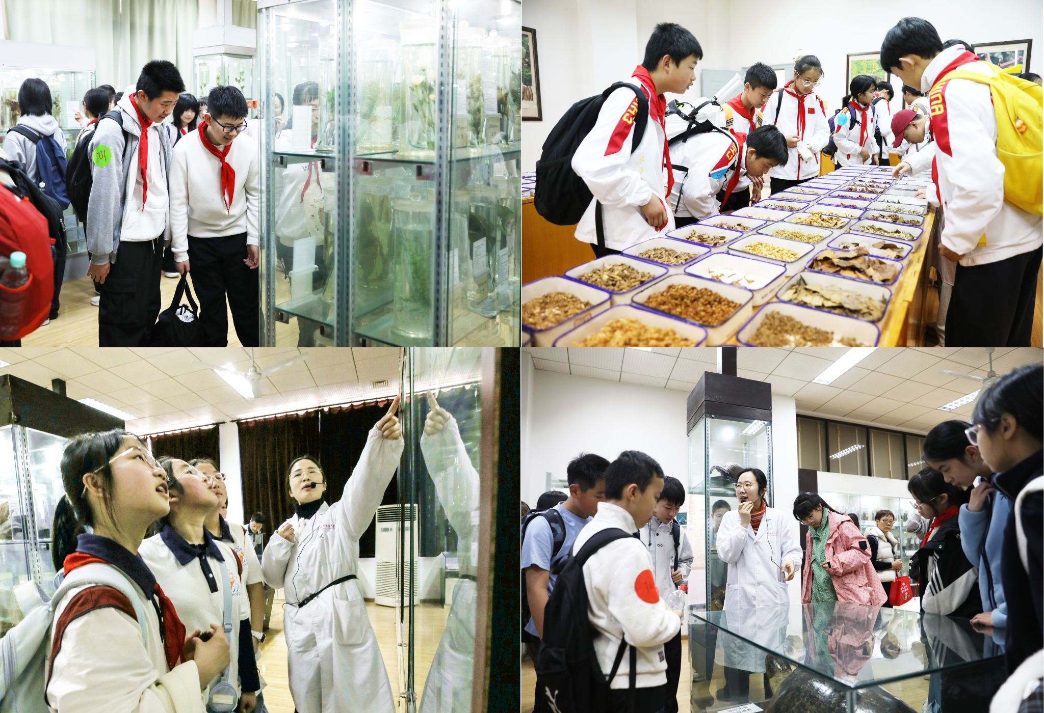 在中药标本馆内,讲解团队用通俗的语言为同学们介绍各类中药材标本的形态特征、产地来源与药用功效。药用植物园里,讲解团队重点介绍植物的识别特征、药用部位与生态价值,同时引导大家树立生态保护意识。