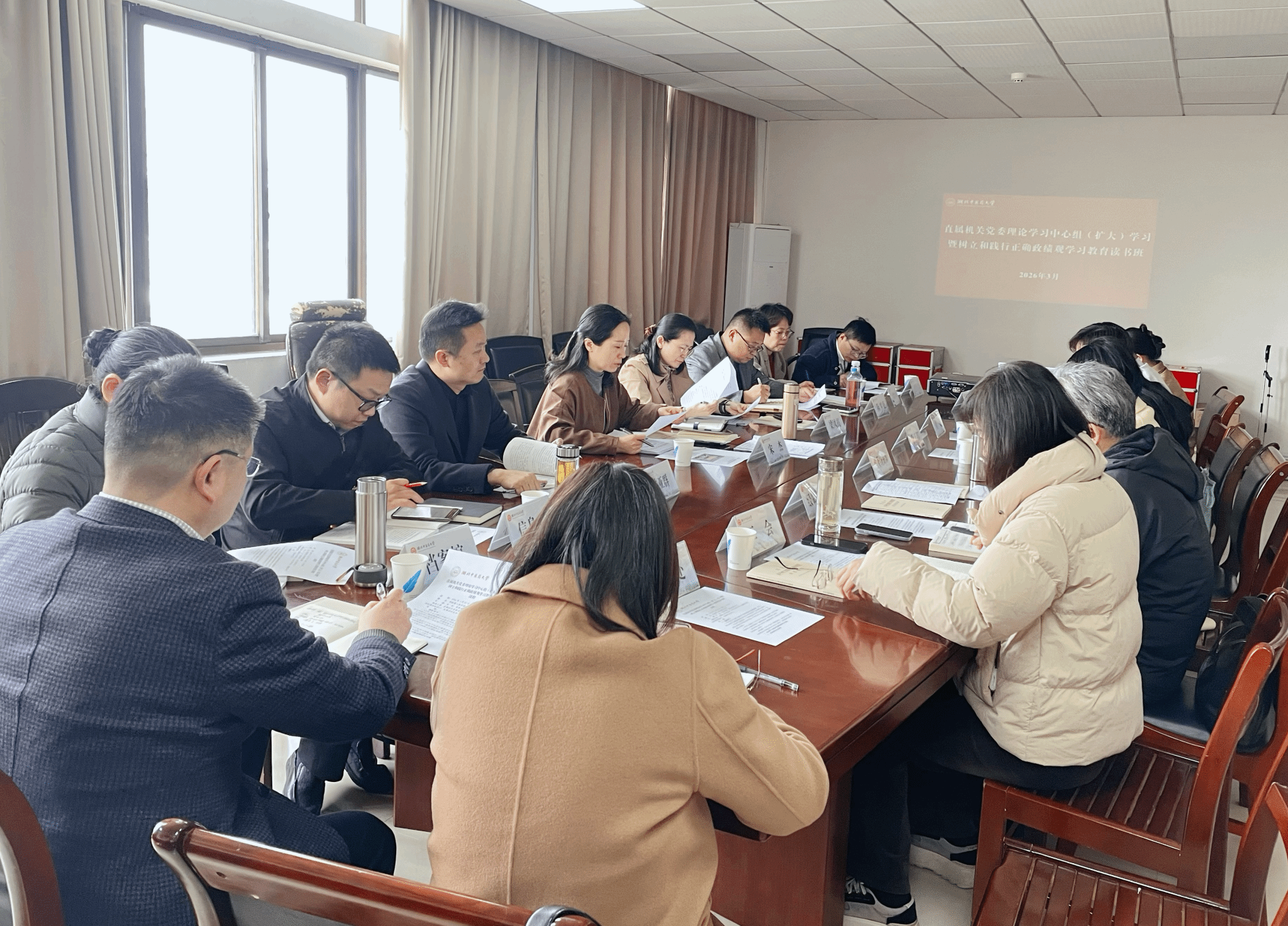 本网讯 为深入学习贯彻习近平总书记关于树立和践行正确政绩观的重要论述,推动树立和践行正确政绩观学习教育走深走实,3月25日,直属机关党委在黄家湖校区举办理论学习中心组(扩大)学习暨树立和践行正确政绩观学习教育读书班。党委常委、机关党委书记宋杰主持会议,直属机关党委委员、各党支部书记,直属机关党委所属职能部门、直属单位负责人参加会议。