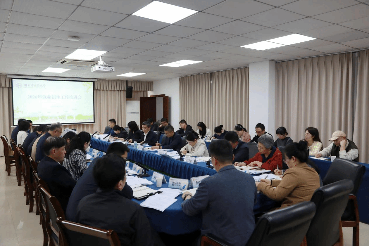 本网讯 4月16日,学校在黄家湖校区召开2026年就业招生工作推进会。党委书记刘松林、党委副书记杨波,相关职能部门,各学院负责人、相关负责人参加会议。会议由杨波主持。