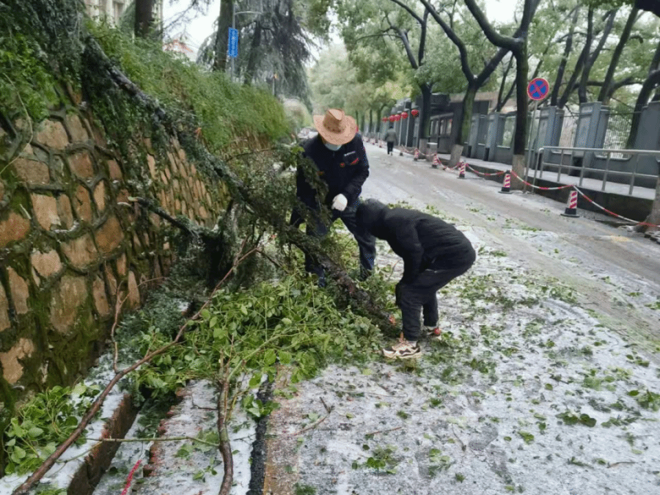 “同志们,路边好多树断了!”“树枝都把路堵了!”4日一大早,黄家湖校区北家属区网格员群就热闹了起来。“学校已经采取措施,我们也要动起来,把自己的家园打扫干净……”看到学校下沉工作群内的动员,张登超第一时间报名,在他的组织下,很快集结了七八位党员干部和志愿者:高川老师特意从东澜岸小区赶到学校支援;廖正微老师听到需要人手,放下锅铲跑下楼集合;马垅老师铲完雪,继续跟车卸树枝;颜春潮老师手臂扭伤,还继续坚持;戴红老师年龄大,依然巾帼不让须眉……大伙分工搬运大树干、清理小树枝、用铁锹铲走树叶,热火朝天、全情投入,浑然不觉衣服鞋袜都已湿透。收工时,依然不忘约定第二天上午再次集合,一起把北区家属区清理干净!