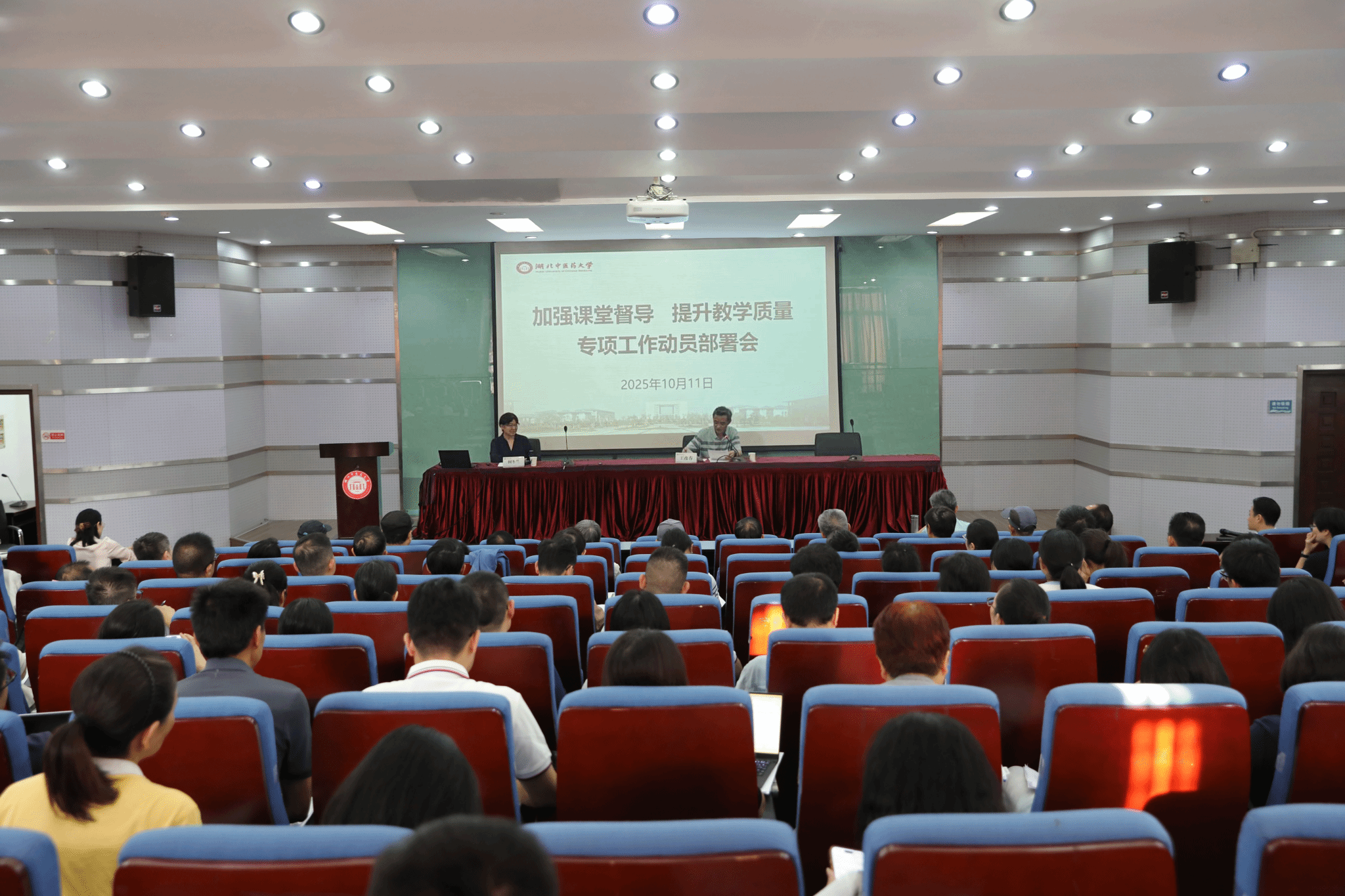 本网讯 10月11日,学校在黄家湖校区云泽楼学术报告厅召开“加强课堂督导 提升教学质量”专项工作部署动员会。会议邀请中南民族大学原教学质量监控评估中心主任兼教务处处长何冬兰教授作专题培训,副校长王彦春主持会议,校院两级督导专家、各学院及相关职能部门负责人参会。