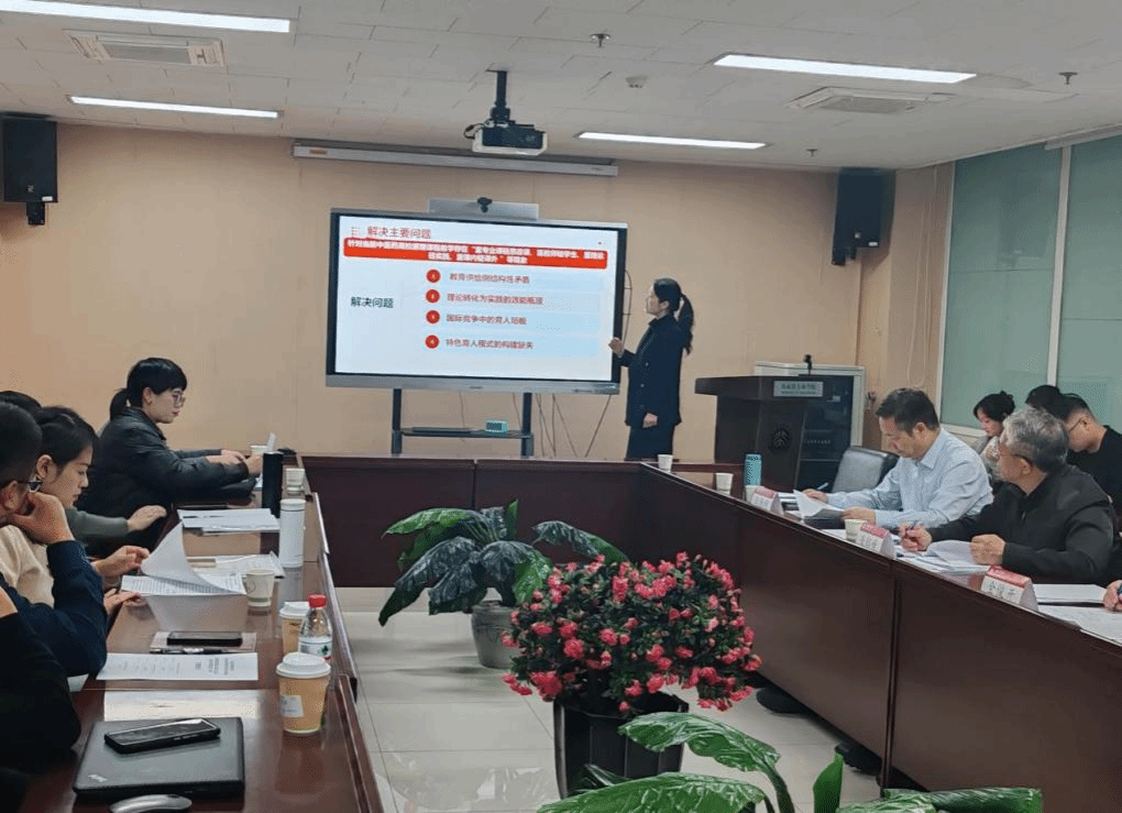 鲁琴副教授代表课题组从研究背景、核心框架、实施路径及预期成果等方面进行了详细汇报。该课题紧扣教育强国建设战略要求,聚焦中医药高校思政课教学与专业教育的融合问题,从《马克思主义基本原理》课程教学内容、教学方法、教学资源和教学评价四个维度挖掘中医药文化与课程教学的内在联系,构建具有中医药特色的马克思主义理论教学模式。