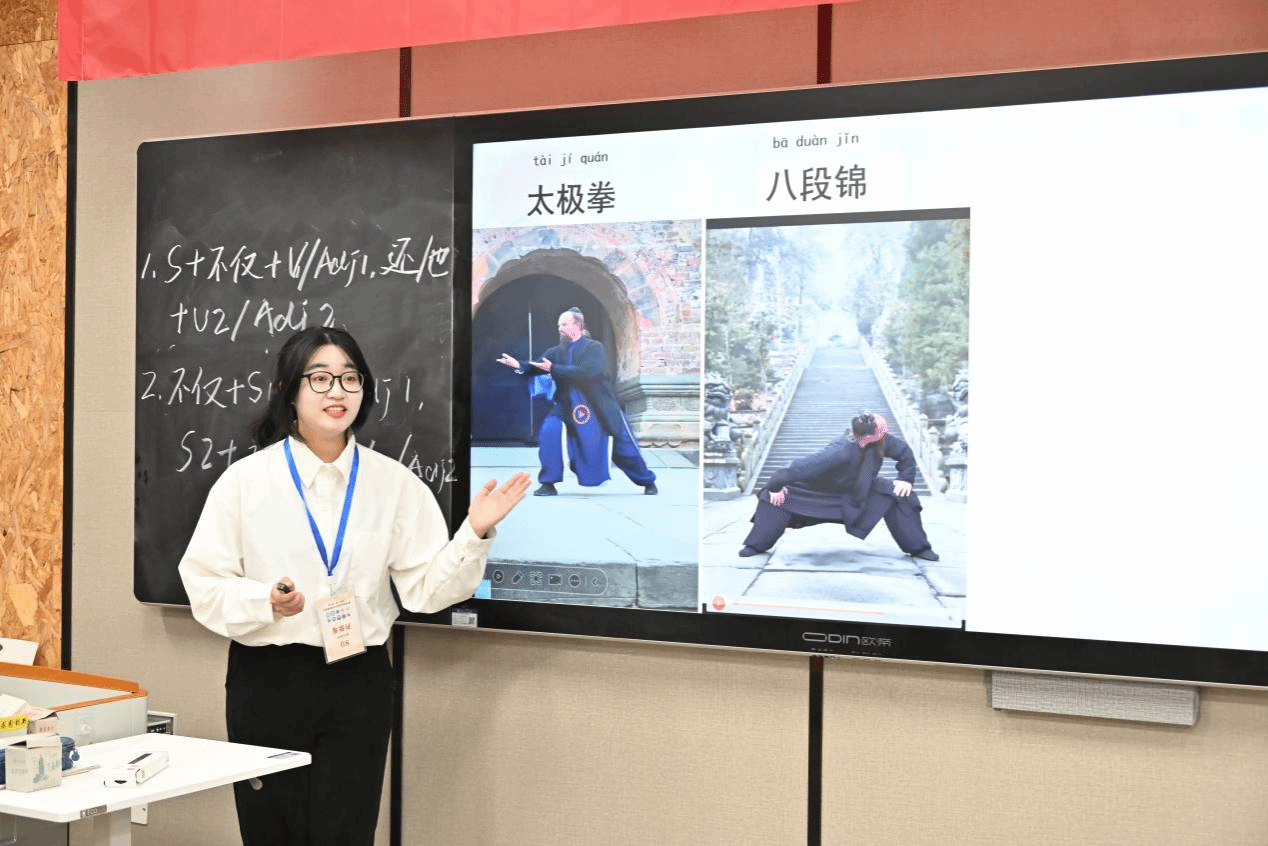本次比赛采取了全新模式,邀请来自俄罗斯、蒙古、摩洛哥、乌兹别克斯坦的七位中级汉语水平的留学生与参赛选手进行课堂互动。