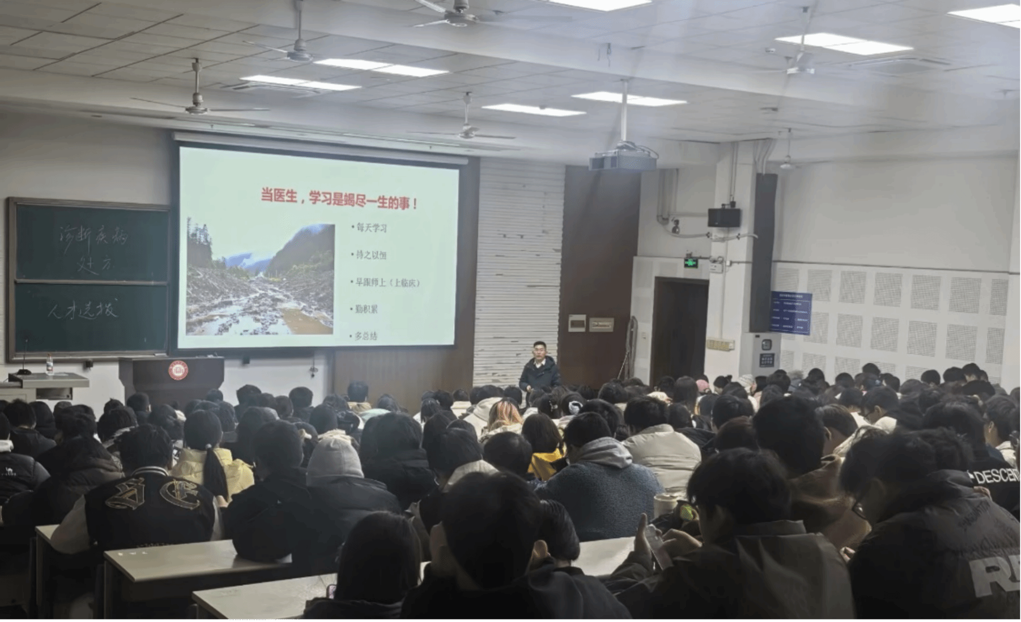 在互动环节,他针对中西医课程、临床与理论兼顾,科研入门等新生关切的问题进行逐一解答。