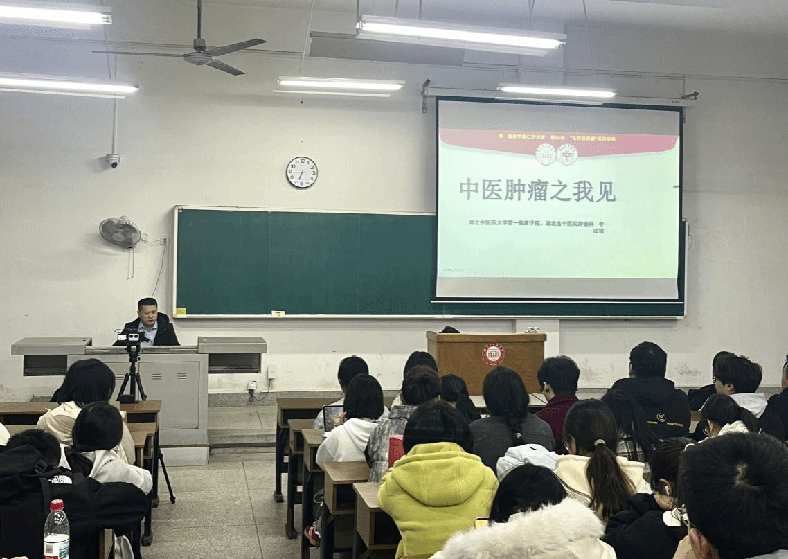 本网讯 3月24日,第一临床学院在昙华林校区举办第44讲仁济讲堂------“名师进课堂”讲座。附属医院(湖北省中医院)肿瘤科李成银主任受邀作题为“中医肿瘤之我见”的专题讲座,120余名师生现场聆听。
