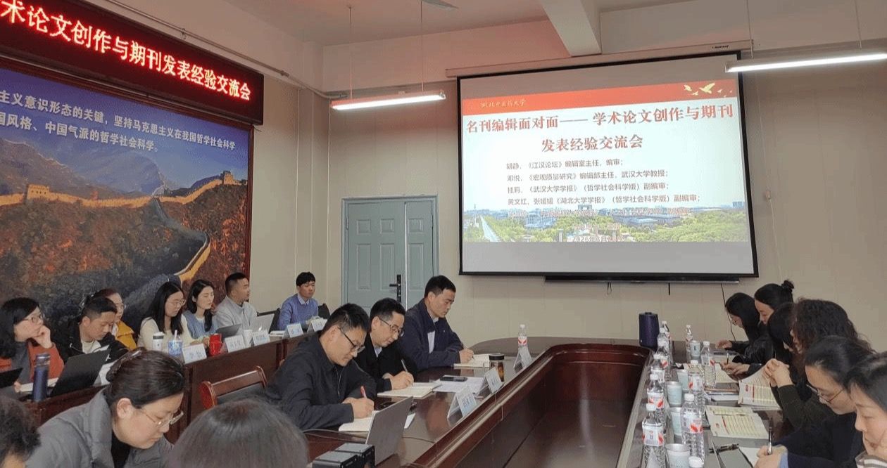 本网讯 3月26日,马克思主义学院举办“名刊编辑面对面——学术论文创作与发表研讨交流会”,邀请《江汉论坛》编辑室主任、编审胡静,《宏观质量研究》编辑部主任、武汉大学教授邓悦,《武汉大学学报》(哲学社会科学版)副编审桂莉,《湖北大学学报》(哲学社会科学版)副编审黄文红、张媛媛,《中南民族大学学报》(人文社会科学版)副编审吴海伦等CSSCI名刊专家参与交流。本次活动是学院“高质量发展”系列活动之一,旨在搭建高水平学术交流平台,提升科研能力与学术成果质量。研讨交流会由马克思主义学院行政负责人主持,全体教师参加研讨交流会。