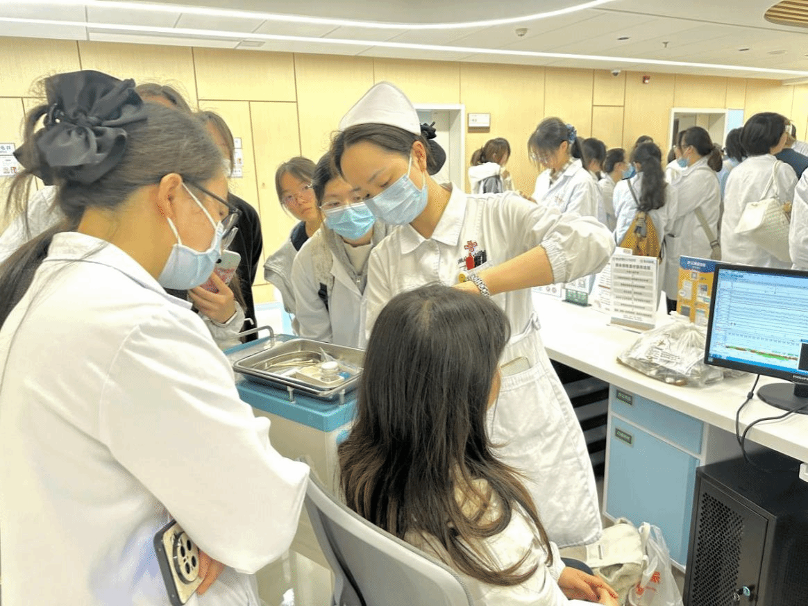 医学人文学院刁春婷副教授带领学生在附属医院光谷院区神志病科参观学习,科室医生系统介绍了在睡眠障碍、焦虑抑郁等领域的临床科研进展,展示了中药方剂作用机制研究及基因敲除大鼠模型等前沿探索,让学生深入理解心理障碍的生物学基础。在互动环节,神志病科主任围绕专业融合、职业发展等问题与同学们深入交流,充分肯定了心理学在患者心理评估、情绪疏导康复中的独特价值,并详细阐释了耳穴压豆等中医非侵入疗法在心理障碍早期干预中的应用前景。