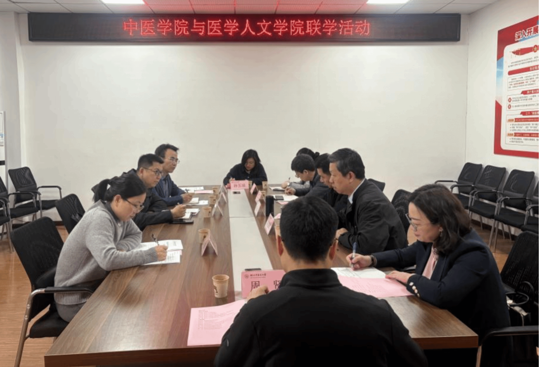 会上,中医学院负责人介绍了中医学一级学科硕士、博士点建设发展历程及人才培养模式创新改革成果。医学人文学院相关负责人对学院概况、专业布局、学科体系及中医文化学硕博士点建设现状进行了阐述,并围绕医学人文学院人才培养方案修订中的重难点问题进行深入研讨。在交流环节,双方教师代表就学科交叉、课程设置等方面内容提出了建设性意见。