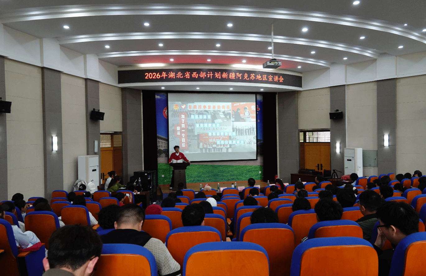 本网讯 为引导和鼓励新时代青年扎根西部、服务基层,4月15日,由湖北省大学生西部计划项目办公室、共青团阿克苏地区委员会主办,学校承办的西部计划新疆阿克苏地区宣讲会在黄家湖校区举行。共青团阿克苏地委西部计划办公室副主任李洋洋、阿克苏市第三中学副校长何宗钊、校团委相关负责人及百余名毕业生代表参加活动。