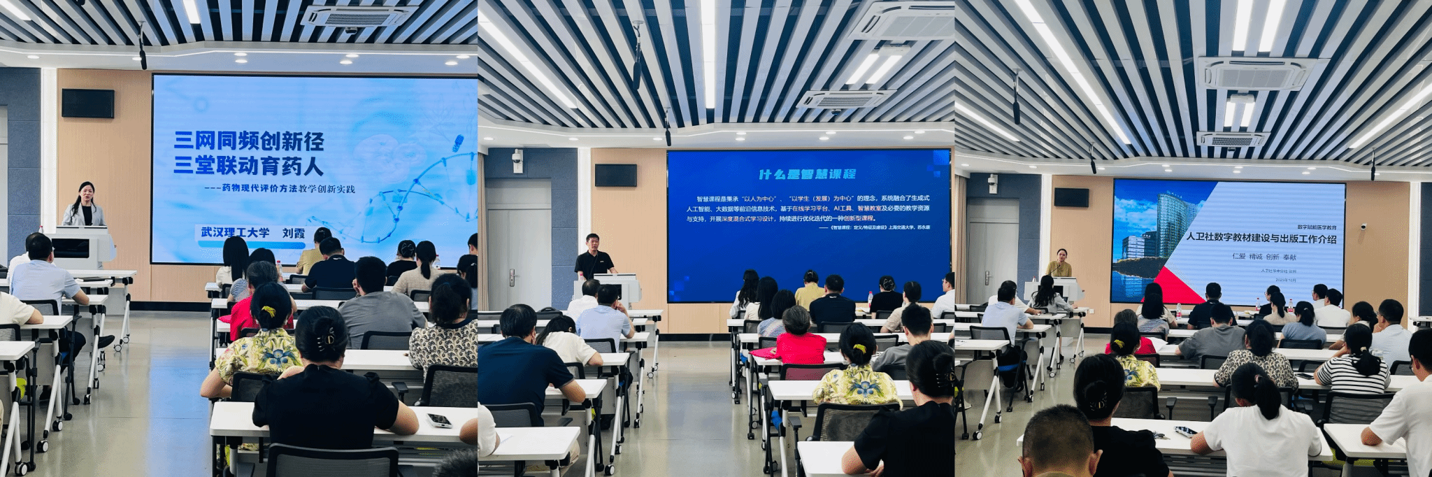 在主题报告环节,刘霞教授以《三网同频创新径 三堂联动育药人——药物现代评价方法教学创新实践》为题,分享了课程教学创新的宝贵经验,为与会教师提供了教学改革的新思路。曾剑锋作了题为《零基础智慧课程的建设与孵化技巧》的报告,详细讲解了智慧课程建设的理念、工具与实践路径。张绵聚焦《人民卫生出版社数字教材建设及出版工作介绍》,梳理了数字教材的建设标准、出版流程与发展趋势。
