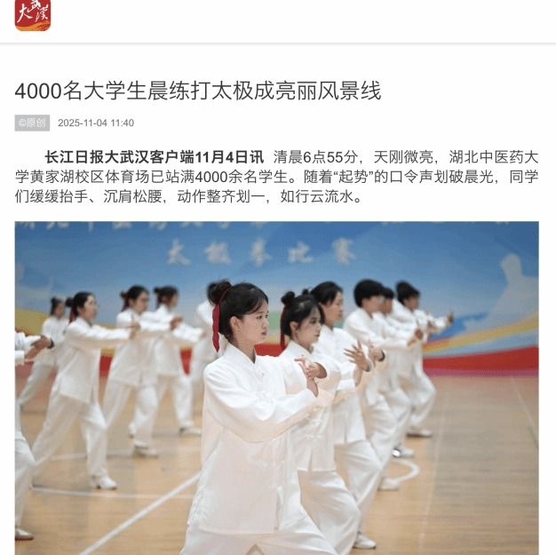 长江日报:4000名大学生晨练打太极成亮丽风景线
