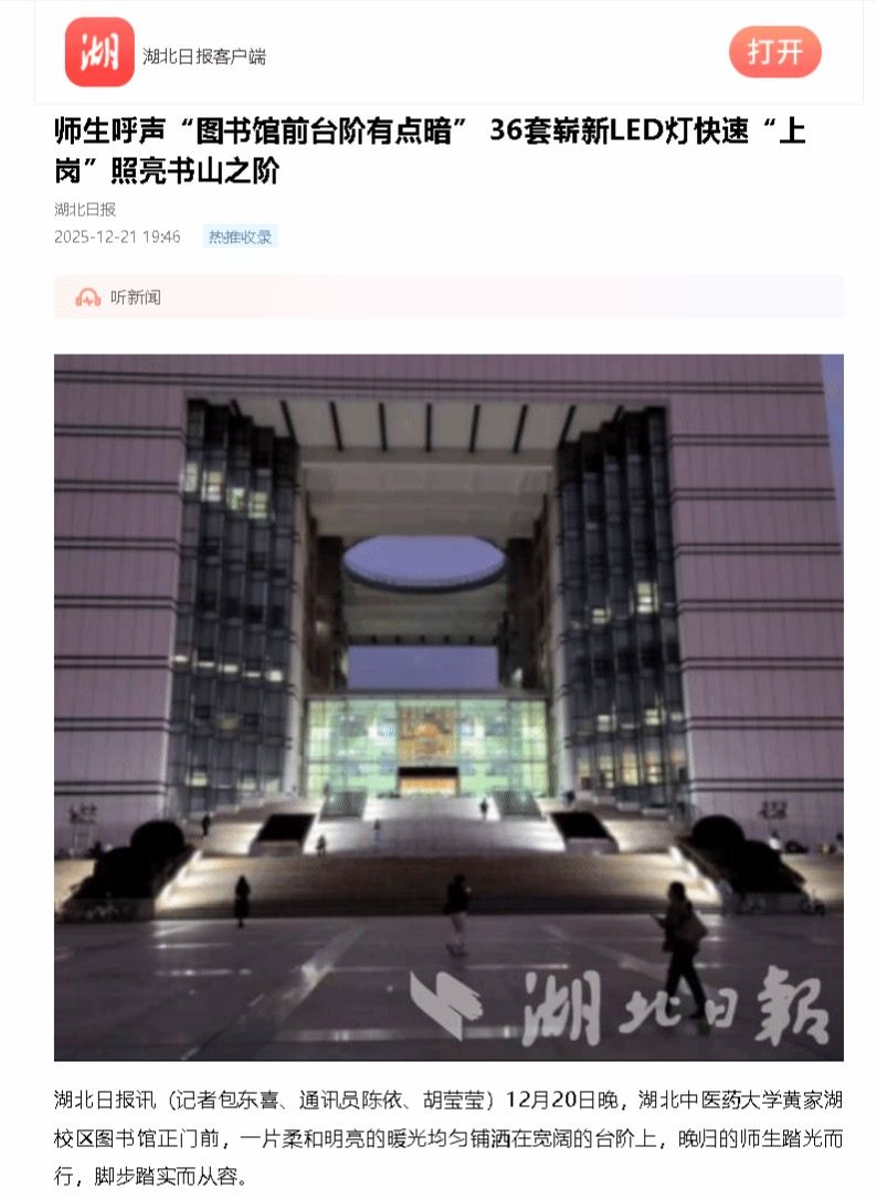 极目新闻:湖北中医药大学图书馆台阶亮起暖心光:师生一声“有点暗”,校园“小事”大办