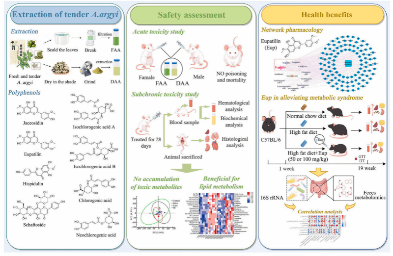 艾叶食用安全性及其活性分子改善代谢综合征研究的图文摘要