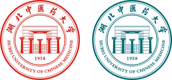 2.图案内容:外圈上部为中文校名,外圈下部为英文校名。内圈为校大门和图书馆正立面图案,下有“1958”字样,代表湖北中医药大学创建年份。